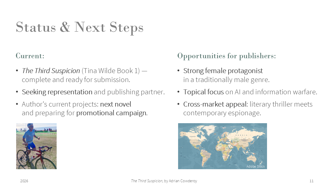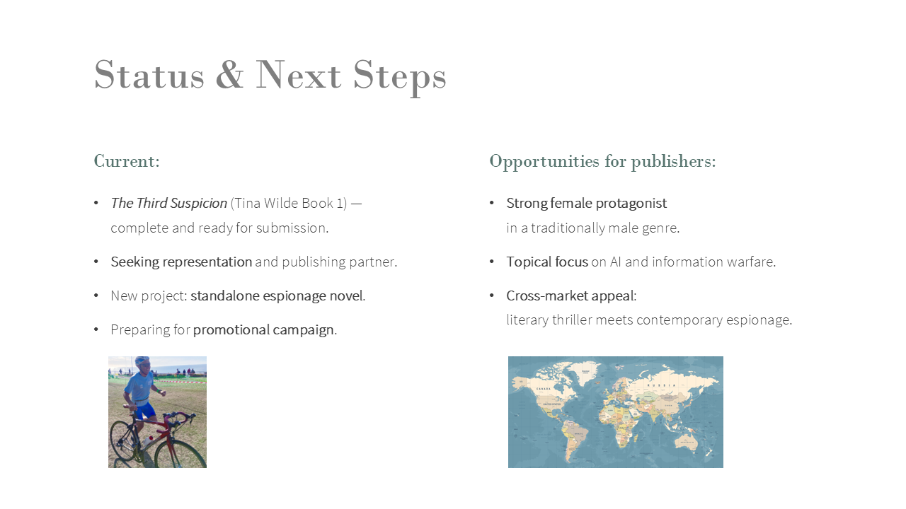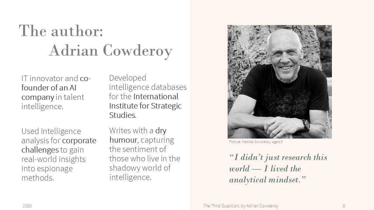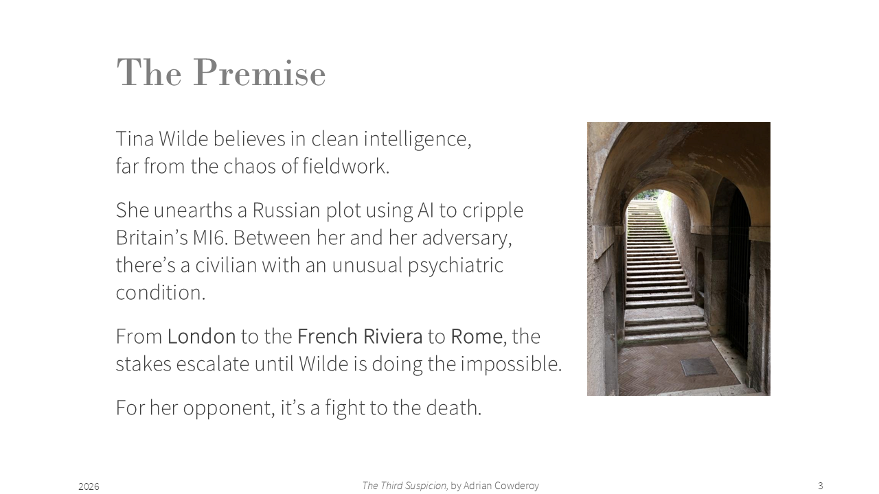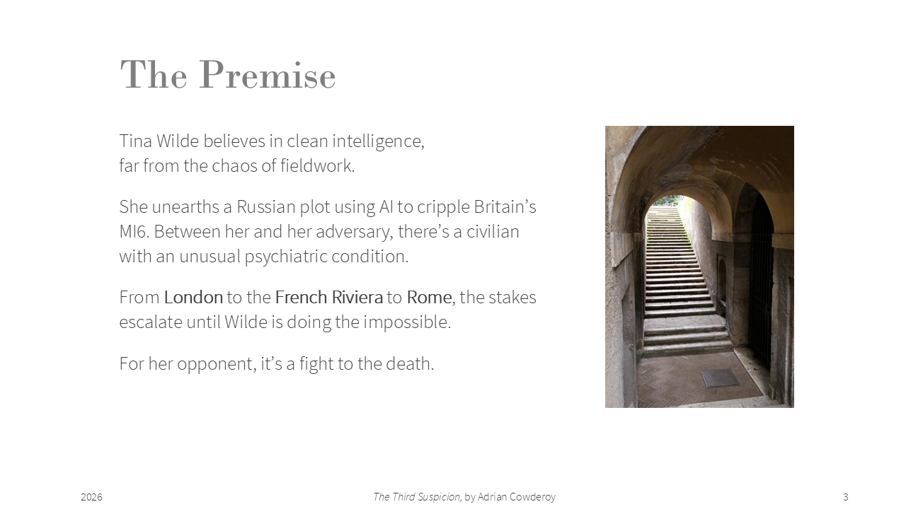 - My pitch at PTA, https://pageturnerawards.com/pitch/the-third-suspicion (access rights required)