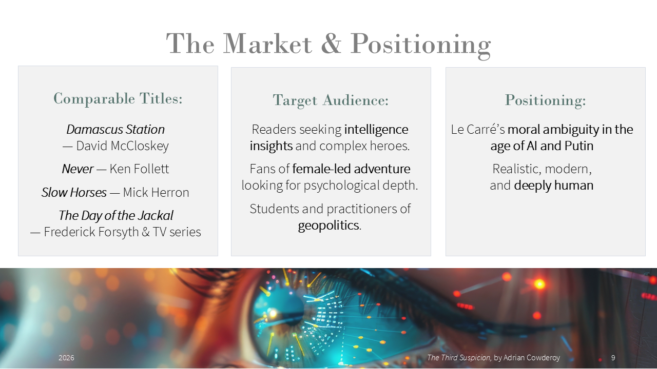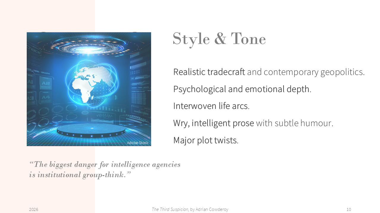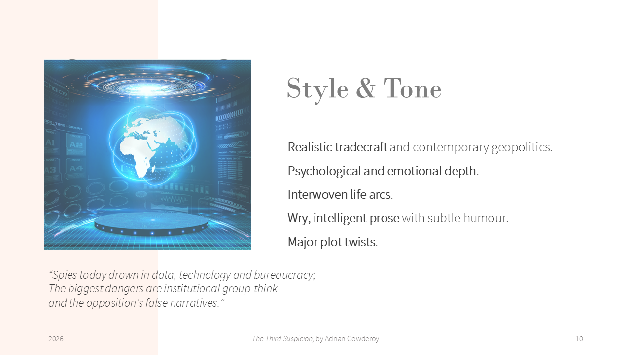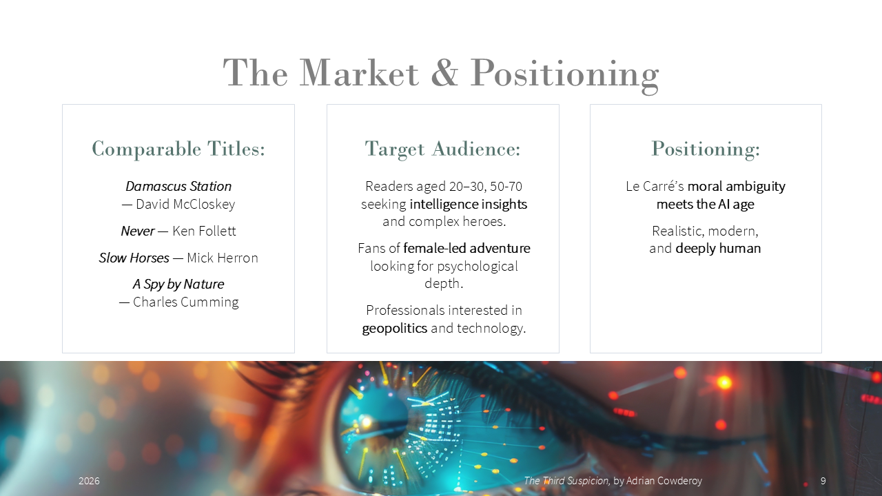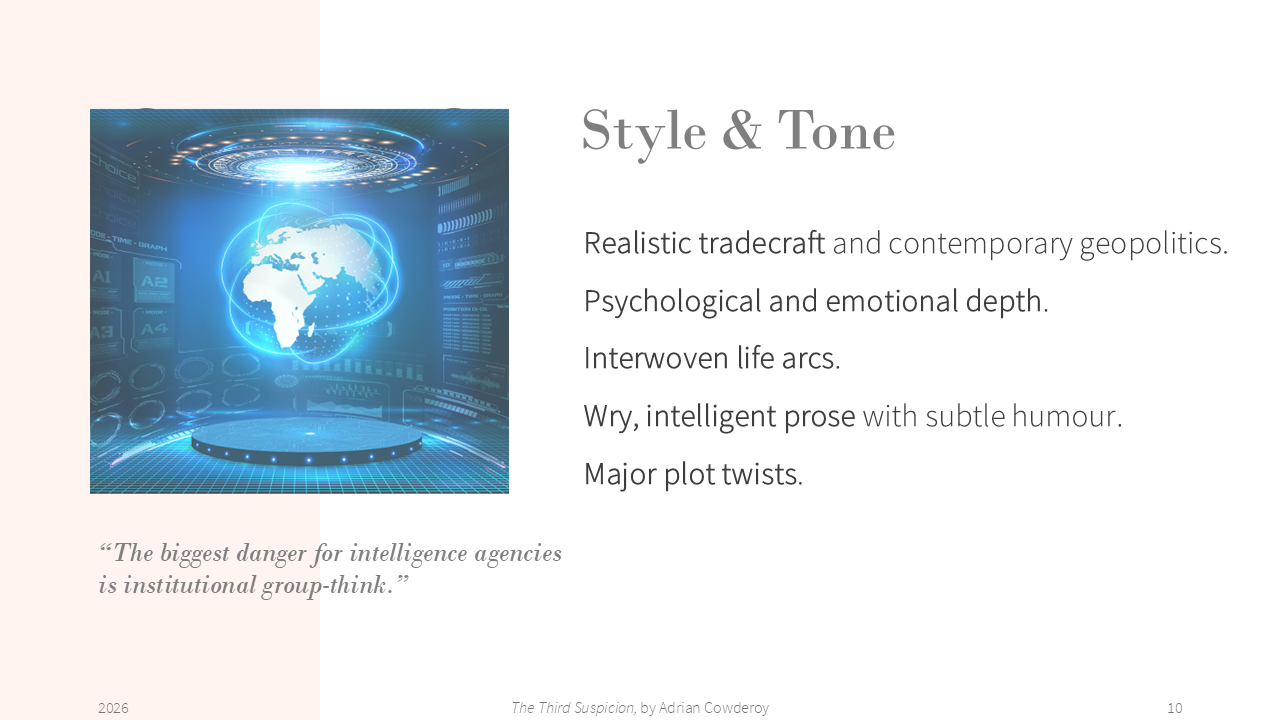 - My pitch at PTA, https://pageturnerawards.com/pitch/the-third-suspicion (access rights required)